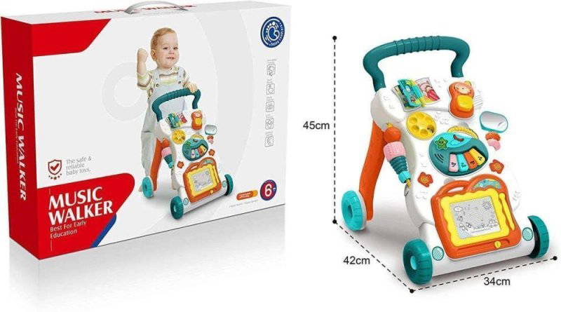 Bu yürüteç, bebeğinizin ilk adımlarını güvenle atmasına yardımcı olurken, üzerindeki eğlenceli aktivitelerle motor becerilerini ve el-göz koordinasyonunu geliştirmesine katkı sağlar.