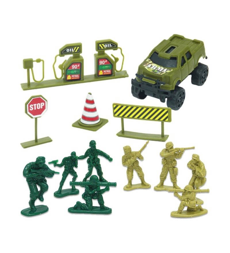 Çocukların hayal gücünü geliştirerek eğlenceli oyunlar kurmasını sağlayan PVC Asker Seti, minik asker figürleri ve araçlarıyla keyifli vakit sunar.