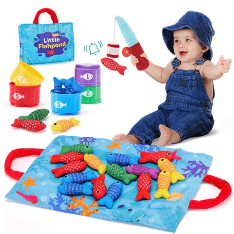 Bu eğlenceli ve renkli balıkçılık oyunu seti; 1 adet oltayla 15 adet yumuşak sünger balık, 5 adet istiflenebilir sepet ve saklamalı okyanus desenli mat içerir.